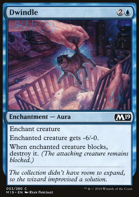 Enchant creature Enchanted creature gets -6/-0. When enchanted creature blocks, destroy it. (The attacking creature remains blocked.)