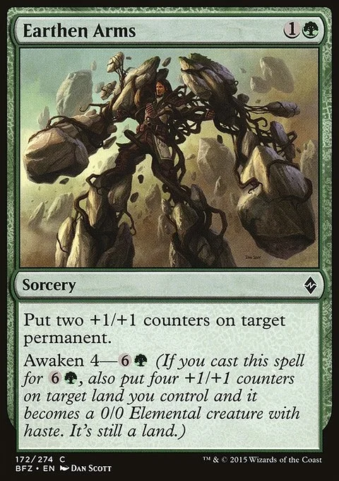 Put two +1/+1 counters on target permanent. Awaken 4—{6}{G} (If you cast this spell for {6}{G}, also put four +1/+1 counters on target land you control and it becomes a 0/0 Elemental creature with haste. It's still a land.)