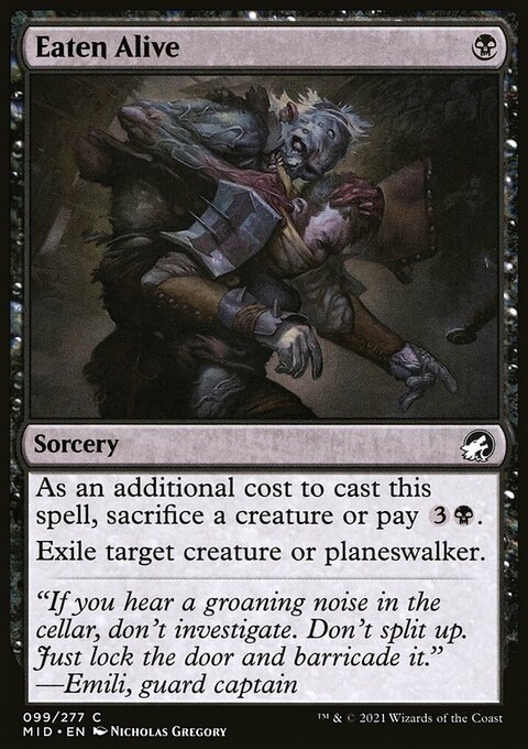 As an additional cost to cast this spell, sacrifice a creature or pay {3}{B}. Exile target creature or planeswalker.