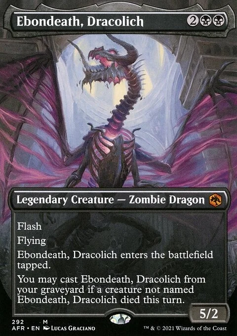 Flash Flying Ebondeath enters tapped. You may cast this card from your graveyard if a creature not named Ebondeath, Dracolich died this turn.