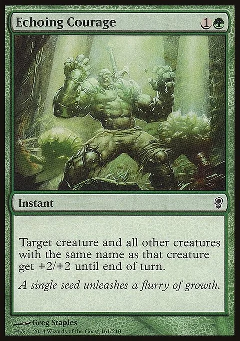 Target creature and all other creatures with the same name as that creature get +2/+2 until end of turn.