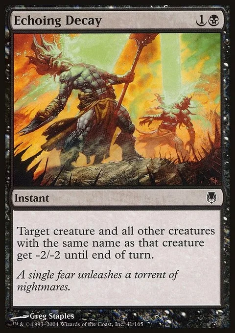 Target creature and all other creatures with the same name as that creature get -2/-2 until end of turn.