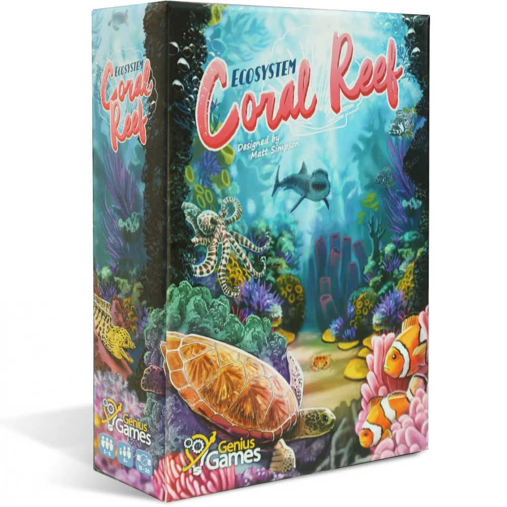 Ecosystem: Coral Reef, is a card drafting game where the players are choosing cards and placing them into their play area turn by turn. The cards in a player's grid make up their own personal marine ecosystem, and the player who has the most efficient ecosystem will be the winner.