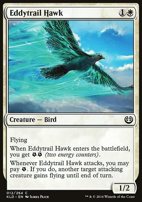 Flying When this creature enters, you get {E}{E} (two energy counters). Whenever this creature attacks, you may pay {E}. If you do, another target attacking creature gains flying until end of turn.