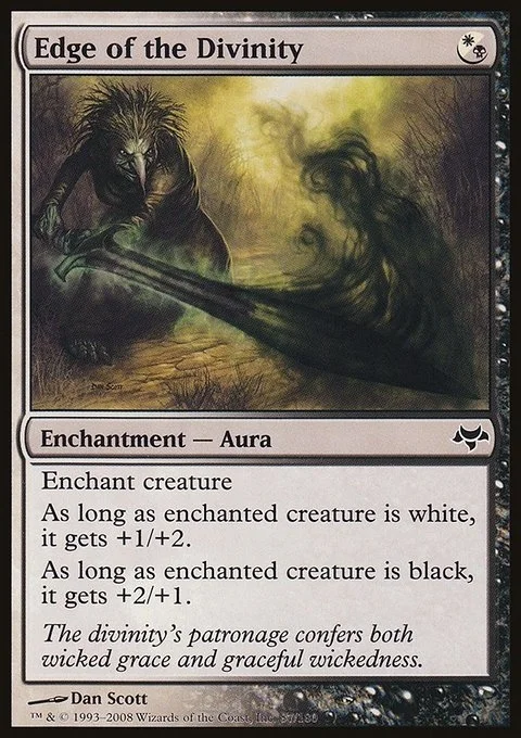 Enchant creature As long as enchanted creature is white, it gets +1/+2. As long as enchanted creature is black, it gets +2/+1.