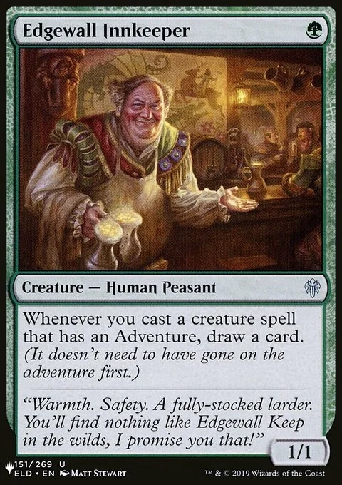 Whenever you cast a creature spell that has an Adventure, draw a card. (It doesn't need to have gone on the adventure first.)