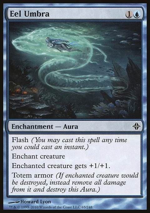 Flash (You may cast this spell any time you could cast an instant.) Enchant creature Enchanted creature gets +1/+1. Umbra armor (If enchanted creature would be destroyed, instead remove all damage from it and destroy this Aura.)