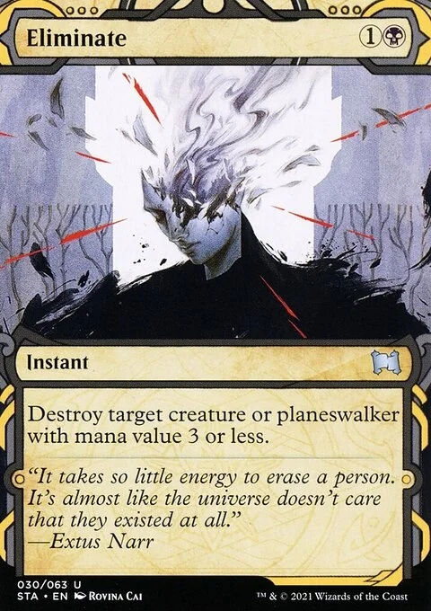 Destroy target creature or planeswalker with mana value 3 or less.