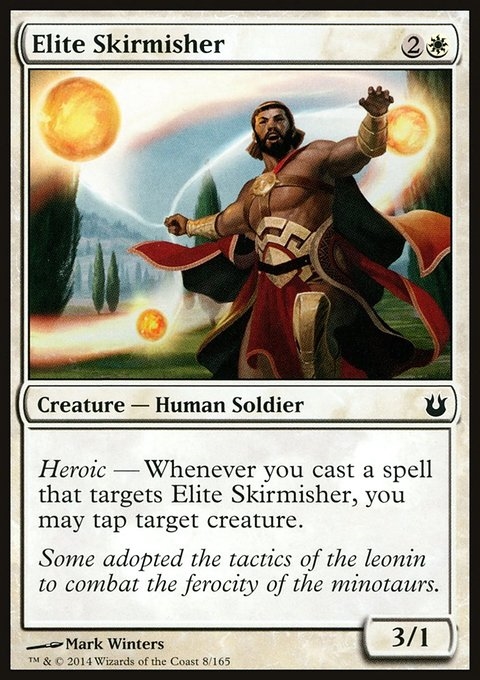 Heroic — Whenever you cast a spell that targets Elite Skirmisher, you may tap target creature.