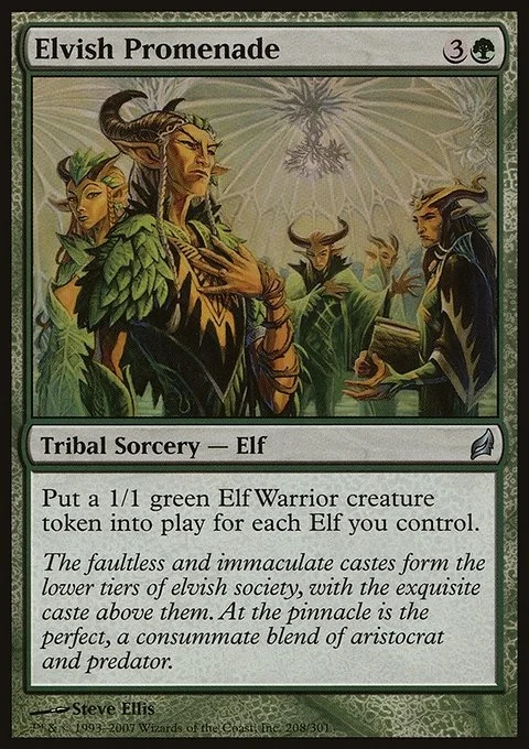 Create a 1/1 green Elf Warrior creature token for each Elf you control.