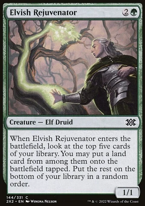 When this creature enters, look at the top five cards of your library. You may put a land card from among them onto the battlefield tapped. Put the rest on the bottom of your library in a random order.