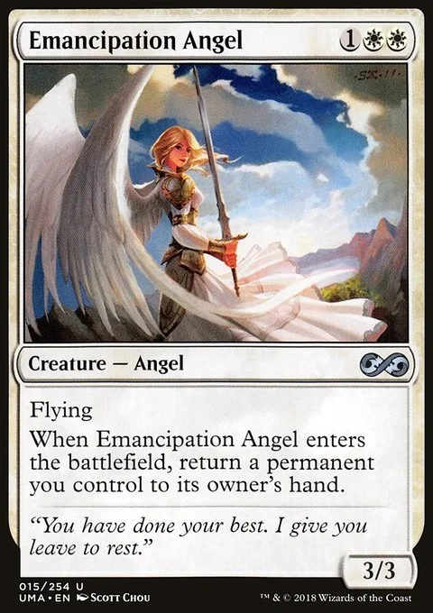 Flying When Emancipation Angel enters the battlefield, return a permanent you control to its owner's hand.