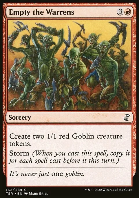 Create two 1/1 red Goblin creature tokens. Storm (When you cast this spell, copy it for each spell cast before it this turn.)