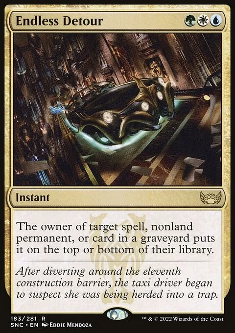 The owner of target spell, nonland permanent, or card in a graveyard puts it on the top or bottom of their library.