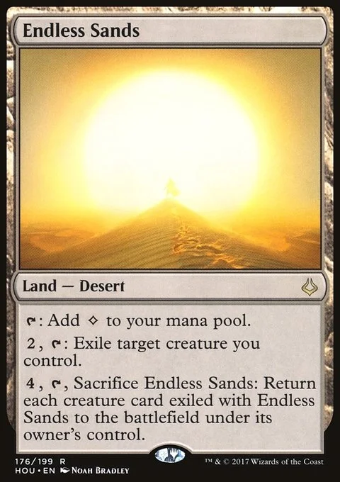 {T}: Add {C}. {2}, {T}: Exile target creature you control. {4}, {T}, Sacrifice Endless Sands: Return each creature card exiled with Endless Sands to the battlefield under its owner's control.