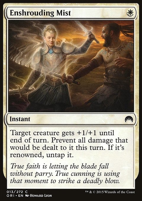 Target creature gets +1/+1 until end of turn. Prevent all damage that would be dealt to it this turn. If it's renowned, untap it.