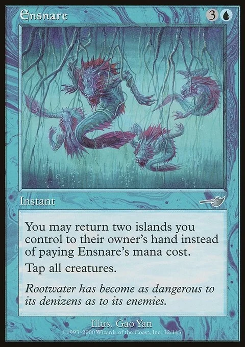 You may return two Islands you control to their owner's hand rather than pay this spell's mana cost. Tap all creatures.