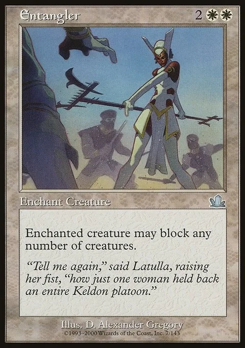Enchant creature Enchanted creature can block any number of creatures.