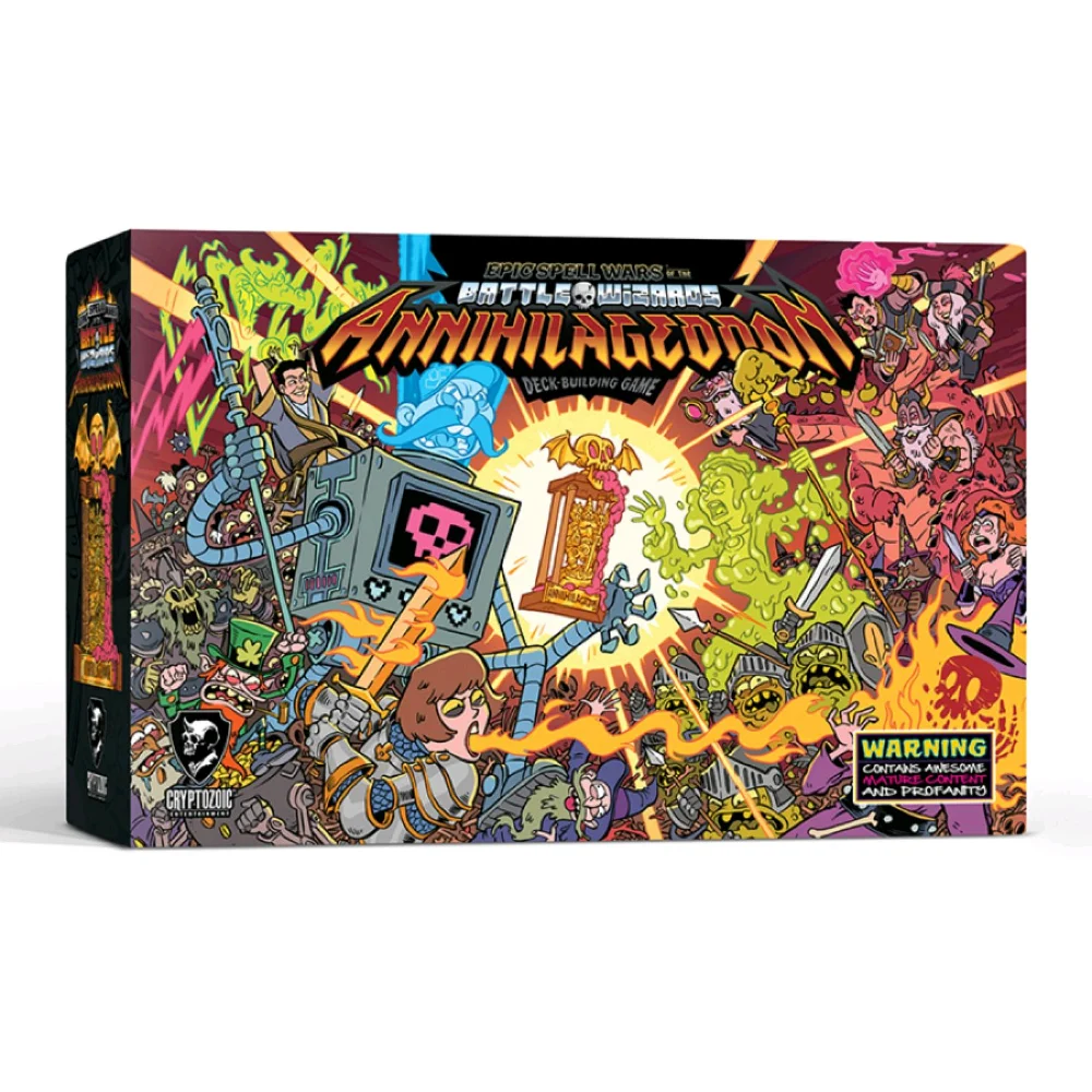 It’s an all-out battle to the death for the Annihilageddon trophy in the crazy world of Epic Spell Wars! While fully compatible with other Cerberus Engine releases, this game features a whole new world of mayhem … literally.