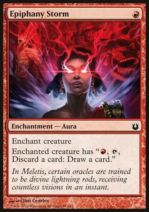 Enchant creature Enchanted creature has "{R}, {T}, Discard a card: Draw a card."