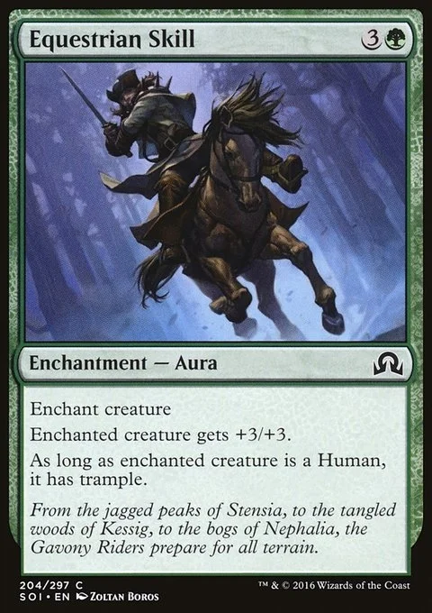 Enchant creature Enchanted creature gets +3/+3. As long as enchanted creature is a Human, it has trample.