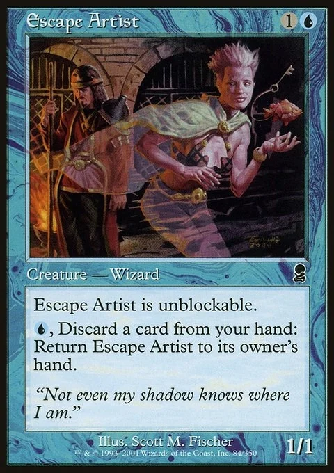 Escape Artist can't be blocked. {U}, Discard a card: Return Escape Artist to its owner's hand.