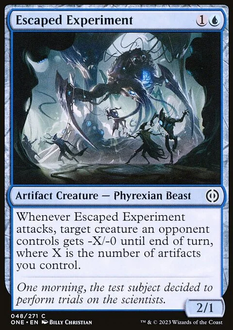 Whenever this creature attacks, target creature an opponent controls gets -X/-0 until end of turn, where X is the number of artifacts you control.