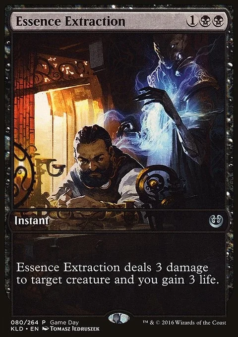 Essence Extraction deals 3 damage to target creature and you gain 3 life.