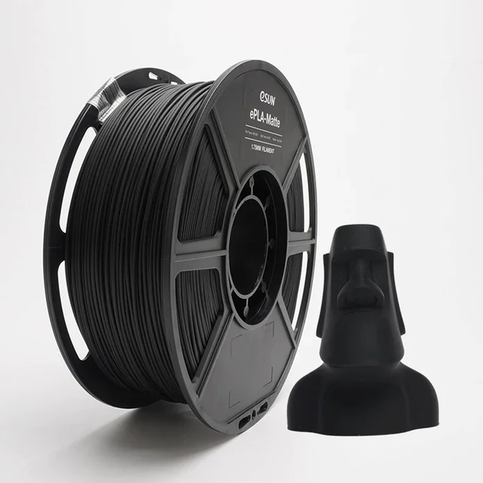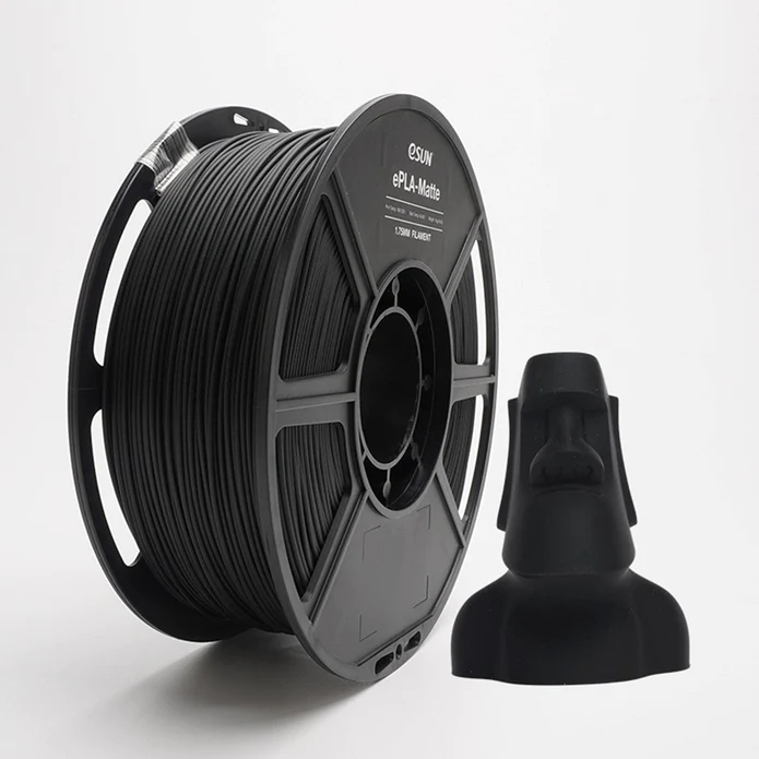 The eSUN 1.75mm ePLA-Matte 3D Printer Filament, PLA-Matte has a matte surface effect with no obvious layer lines. It has a lower density and saves 21% filament on the same printing project as other PLA filaments. It's tougher and not as easy to break compared to standard PLA. The support structure is easy to peel off and the printed surface is not scratched.