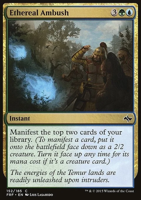 Manifest the top two cards of your library. (To manifest a card, put it onto the battlefield face down as a 2/2 creature. Turn it face up any time for its mana cost if it's a creature card.)