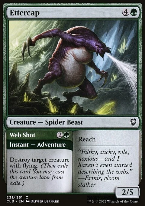 Ettercap Reach Web Shot Destroy target creature with flying. (Then exile this card. You may cast the creature later from exile.)