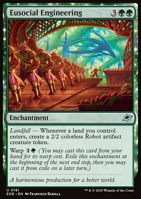 Landfall — Whenever a land you control enters, create a 2/2 colorless Robot artifact creature token.