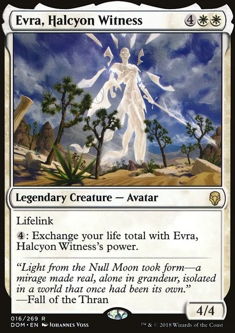 Lifelink {4}: Exchange your life total with Evra, Halcyon Witness's power.