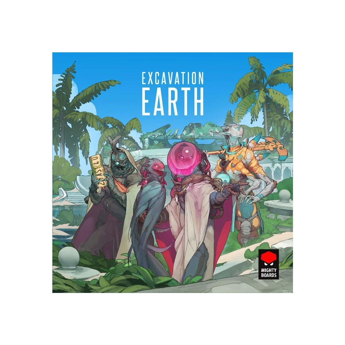 The artifacts you dig up can be either sold to the bazaars housed on one of the aliens' ships that landed on Earth or added to a collection that will be sold off as a coherent art collection to museums back home. Excavation Earth ends after three rounds and the player who makes the most money during the game wins.