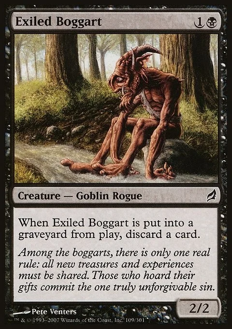 When Exiled Boggart dies, discard a card.