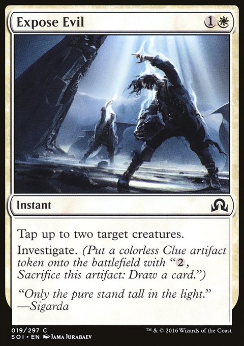 Tap up to two target creatures. Investigate. (Create a Clue token. It's an artifact with "{2}, Sacrifice this token: Draw a card.")