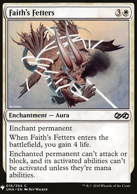 Enchant permanent When this Aura enters, you gain 4 life. Enchanted permanent can't attack or block, and its activated abilities can't be activated unless they're mana abilities.
