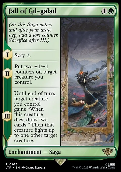III — Until end of turn, target creature you control gains "When this creature dies, draw two cards." Then that creature fights up to one other target creature.