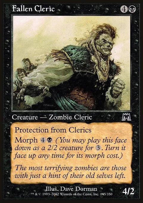 Protection from Clerics Morph {4}{B} (You may cast this card face down as a 2/2 creature for {3}. Turn it face up any time for its morph cost.)