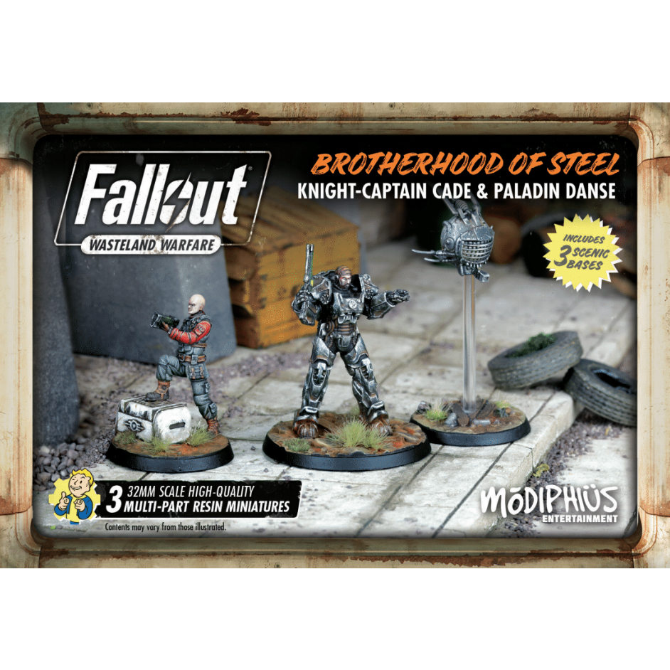 1x Knight-Captain Cade, 1x Paladin Danse, 1x Eyebot, 3x Scenic bases