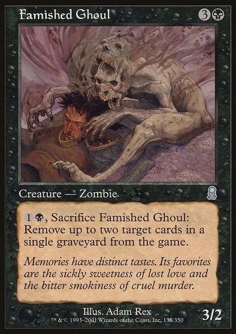 1B, Sacrifice Famished Ghoul: Remove up to two target cards in a single graveyard from the game.