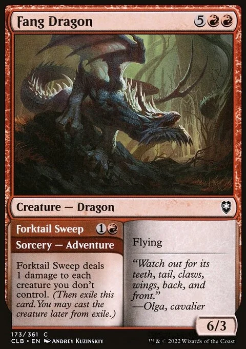 Fang Dragon Flying Forktail Sweep Forktail Sweep deals 1 damage to each creature you don't control. (Then exile this card. You may cast the creature later from exile.)