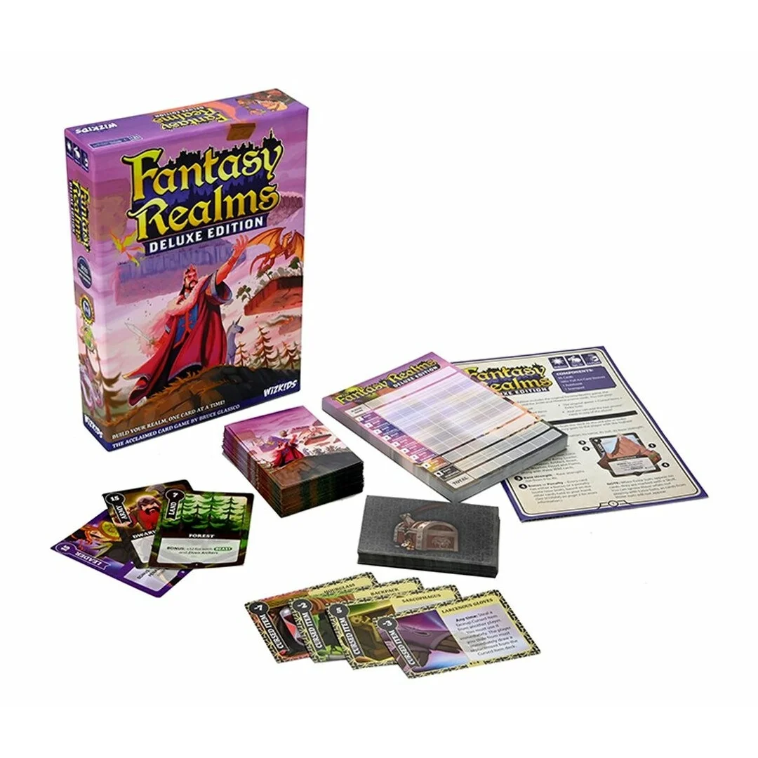 Bruce Glassco’s Fantasy Realms is a modern classic, and this new Deluxe Edition has updated every card with a sleek, intuitive graphic design. The base game cards have also been updated to include new art from Anthony Cournoyer to match his beloved work on The Cursed Hoard expansion, giving the entire game a fresh look!