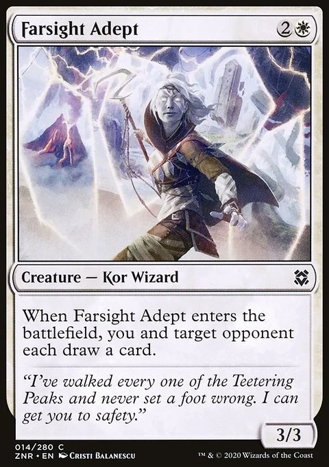 When Farsight Adept enters the battlefield, you and target opponent each draw a card.