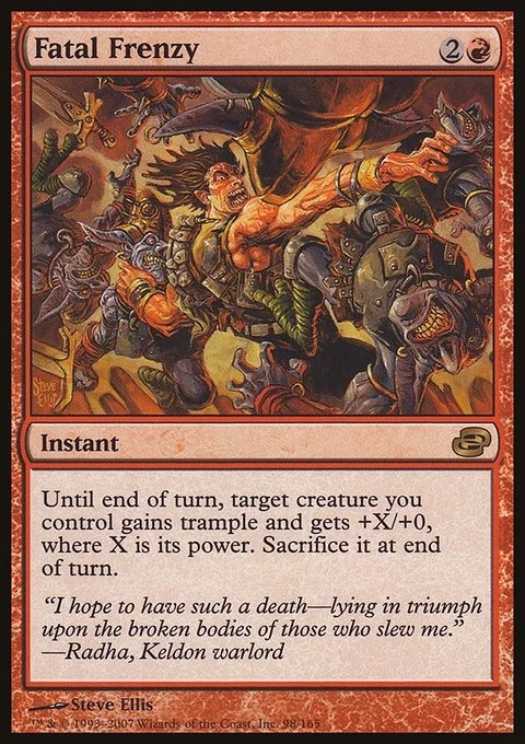 Until end of turn, target creature you control gains trample and gets +X/+0, where X is its power. Sacrifice it at the beginning of the next end step.