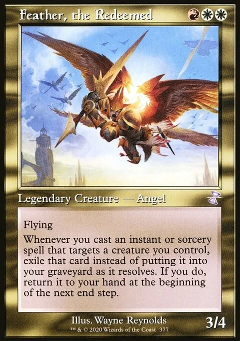 Flying Whenever you cast an instant or sorcery spell that targets a creature you control, exile that card instead of putting it into your graveyard as it resolves. If you do, return it to your hand at the beginning of the next end step.