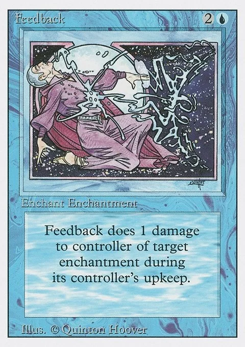 Feedback does 1 damage to controller of target enchantment during its controller’s upkeep.