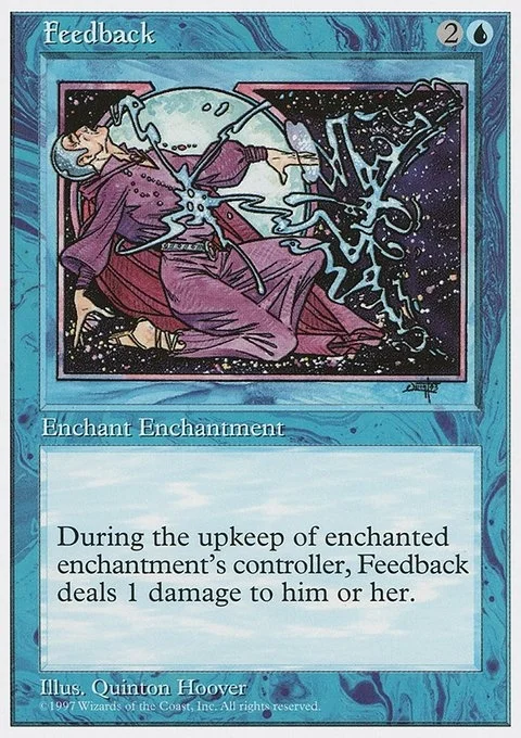 During the upkeep of enchanted enchantment’s controller, Feedback deals 1 damage to him or her.
