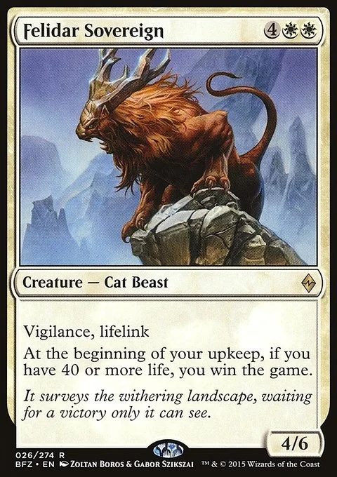 Vigilance (Attacking doesn't cause this creature to tap.) Lifelink (Damage dealt by this creature also causes you to gain that much life.) At the beginning of your upkeep, if you have 40 or more life, you win the game.