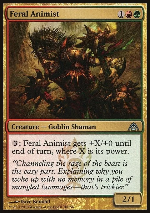 {3}: Feral Animist gets +X/+0 until end of turn, where X is its power.